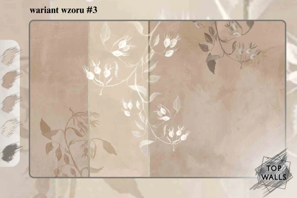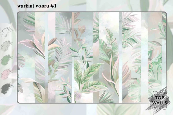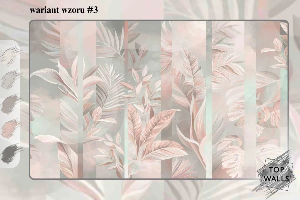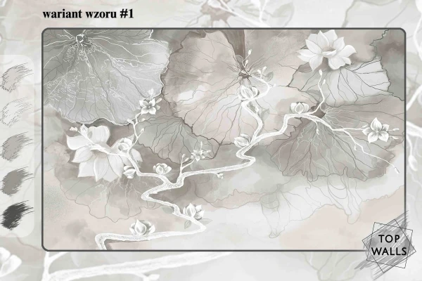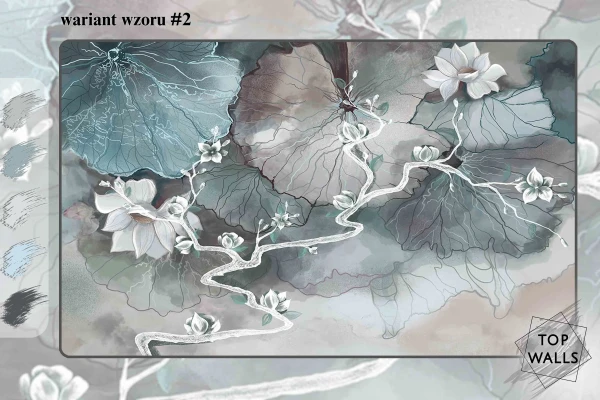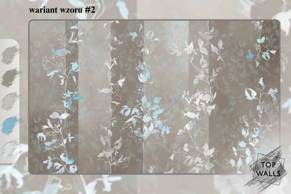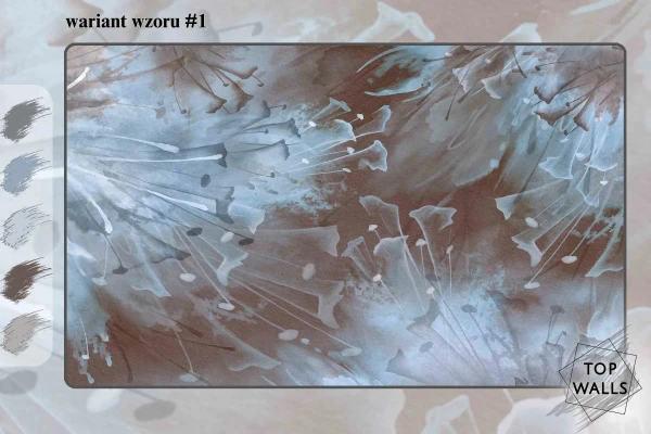 Ten wzór to subtelna gra odcieni szarości, beżu i błękitu, która tworzy harmonijną, kojącą kompozycję inspirowaną naturą. Delikatne, abstrakcyjne kształty liści i traw zdają się falować pod wpływem wiatru, wprowadzając do wnętrza poczucie lekkości i przestrzeni. Akwarelowe przejścia kolorystyczne i miękkie linie sprawiają, że dekoracja ta doskonale komponuje się z nowoczesnymi i minimalistycznymi aranżacjami, dodając im elegancji oraz odrobiny artystycznej swobody. Fototapeta do salonu to idealna propozycja dla tych, którzy pragną stworzyć spokojne i stylowe wnętrze.