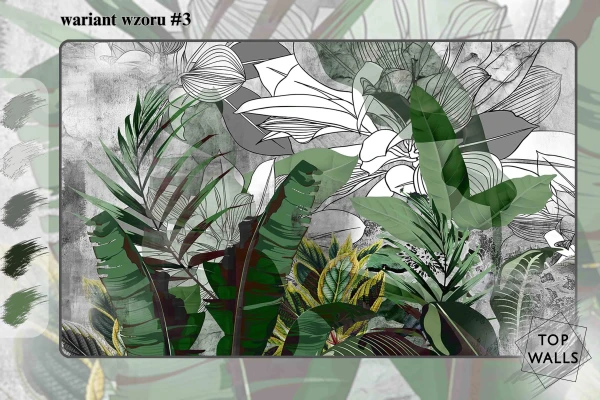Fototapeta do salonu z kolekcji Bosco od Studia TopWalls to artystyczna podróż do serca dzikiej natury, gdzie inspiracją stały się dziewicze krajobrazy i nieujarzmiona roślinność. Projektanci czerpali z piękna lasów, łąk i ogrodów, tworząc wzory, które oddają esencję naturalnego świata. Dominują tu motywy liści, gałęzi, kwiatów i traw, często przedstawione w technice malarstwa olejnego, co nadaje im głębię i wyrazistość. Tapeta niebieska z kolekcji Bosco charakteryzuje się stonowaną paletą barw, obejmującą odcienie beżu, zieleni, błękitu i szarości, co sprawia, że doskonale komponuje się z różnorodnymi aranżacjami wnętrz. Jej uniwersalność pozwala na zastosowanie zarówno w nowoczesnych, jak i klasycznych przestrzeniach, wprowadzając atmosferę spokoju i bliskości z naturą. Dzięki autorskiemu podejściu Studia TopWalls, każda tapeta z tej kolekcji staje się nie tylko dekoracją, ale również wyrazem artystycznej wrażliwości i hołdem dla piękna otaczającego nas świata.