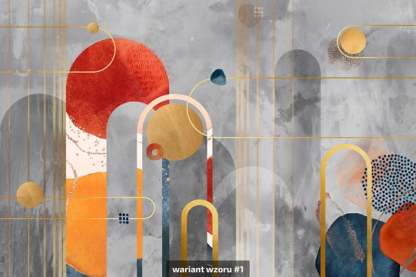 Geometryczna elegancja i współczesny minimalizm — tak można opisać dekoracyjną kompozycję ścienną od Studia TopWalls. Zestawienie dużych, przenikających się okręgów w tonacjach szarości, granatu i beżu, uzupełnione zostało złotymi konturami, które dodają kompozycji subtelnego blasku. Efekt lekkości i głębi został osiągnięty dzięki przemyślanemu cieniowaniu oraz teksturze przypominającej delikatne tkaniny. Tapeta koła to dekoracja idealna dla przestrzeni nowoczesnych, które poszukują wyważonego akcentu artystycznego — wyrafinowanego, ale nienachalnego. Studio TopWalls ponownie dowodzi, że prostota może być niezwykle wyrazista.
