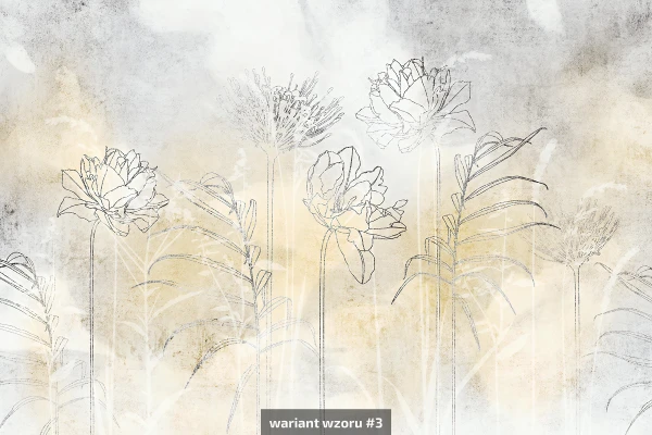 Na obrazie widać delikatne, niemal przezroczyste formy przypominające liście lub płatki kwiatów, które rozpościerają się w harmonijnym rytmie. Każda linia jest miękka i płynna, tworząc wrażenie subtelnego ruchu i lekkości. Jasne odcienie beżu i bieli nadają całości elegancji i spokoju, a organiczne kształty przywołują na myśl naturę i jej ulotne piękno. Elegancka tapeta do salonu to kompozycja pełna światła i przestrzeni — idealny motyw na ozdobę ścienną, która wprowadza do wnętrza harmonię i delikatny, naturalny urok.