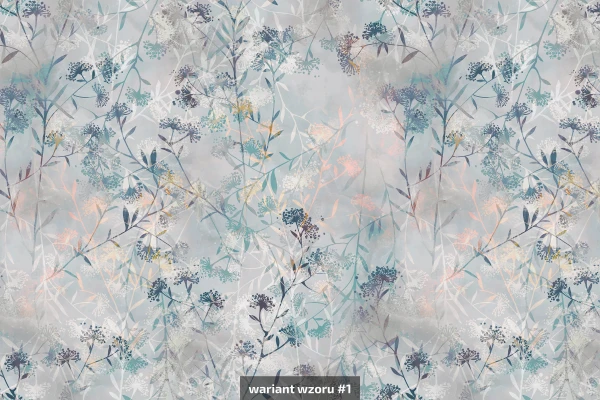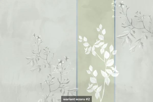Na tej ilustracji rozciąga się romantyczna symfonia pastelowych barw i eterycznych form. Delikatne pionowe pasy w tonacjach pudrowego różu, szałwiowej zieleni i zgaszonego beżu przeplatają się ze sobą niczym powiewające zasłony w porannym świetle. Z tych subtelnych tkanin barw wyrastają wijące się rośliny – lekkie jak mgła, niemal ulotne w swojej obecności. Wzory florystyczne przypominają impresję stworzoną przez światło i cień. Miękkie kontury liści i kwiatów zdają się tańczyć w rytmie niewidzialnego wiatru, wprowadzając do kompozycji wrażenie ruchu i lekkości. Przez obraz przemykają również motyle – drobne akcenty dodające całości życia i bajkowego uroku. Tapeta w sypialni za łóżkiem to dekoracja, która niczym poezja natury koi zmysły, tworząc atmosferę łagodności i wyrafinowanej elegancji. Idealna do wnętrz, które pragną spokoju, subtelności i ponadczasowego piękna.