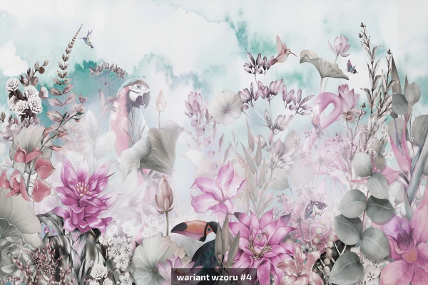 Ilustracja przypomina zapisaną na półprzezroczystym jedwabiu melodię łąki — gęsty, a jednocześnie lekki wzór delikatnych roślin splatających się w eteryczny taniec. W gałązkach i baldachimach dzikich kwiatów, utrzymanych w subtelnych odcieniach błękitu, granatu, chłodnej zieleni oraz pudrowego różu i brzoskwini, tkwi harmonia i rytm. Warstwowość kompozycji tworzy efekt głębi — niczym spojrzenie przez zamglone okno na ogród poruszany wiatrem. Światło wydaje się przenikać przez liście, rozmywać ich kontury i odbijać się jak poranny blask na tafli wody. Tapeta w drobne kwiaty to obraz, który koi zmysły i otula przestrzeń szeptem natury. Pełen spokoju, lekkości i pastelowego uroku, idealny do wnętrz, które szukają ciszy w ruchu i poezji w detalach.