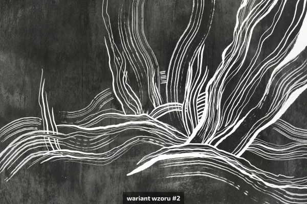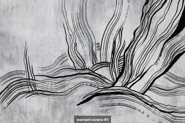 Obraz przedstawia nowoczesną, abstrakcyjną kompozycję opartą na dynamicznych liniach i miękkich krzywiznach. Na tle o delikatnej, ziarnistej fakturze wiją się szerokie, nieregularne pętle przypominające spontaniczne pociągnięcia pędzla. Przenikają się one i splatają, tworząc rytmiczny, niemal taneczny układ. Minimalistyczna paleta barw podkreśla grę światła i cienia, nadając całości głębi i wyrafinowanej prostoty. Tapeta geometryczna szara emanuje energią, a jednocześnie zachowuje harmonię — stanowi doskonałe połączenie ekspresji i równowagi.