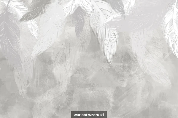 Na obrazie widać subtelne, falujące formy przypominające delikatne płatki kwiatów lub liście unoszące się na wietrze. Ich cienkie, precyzyjnie poprowadzone linie tworzą wrażenie ruchu, lekkości i harmonii. Jasne odcienie bieli i szarości nadają całości elegancji oraz spokojnego, wyrafinowanego charakteru. Tapeta w sypialni za łóżkiem pełna jest światła i przestrzeni — doskonały motyw na tapetę ścienną, która wprowadzi do wnętrza subtelną nowoczesność i naturalną delikatność.