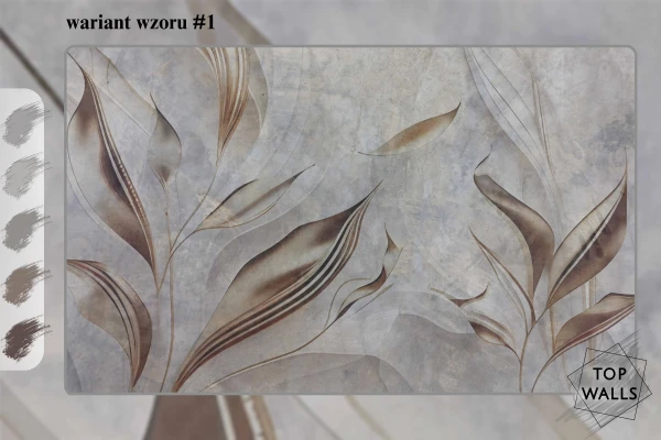 Ta niezwykle subtelna kompozycja łączy w sobie abstrakcyjne formy i delikatne szkice roślinne, tworząc wrażenie snu przeniesionego na ścianę. Białe kontury liści i pąków unoszą się lekko na tle stonowanych beży, szarości i muśnięć złota, tworząc efekt głębi i naturalnego rytmu. To tapeta do salonu kosmetycznego, która nie tylko zdobi, ale i koi. Idealnie wpasuje się w przestrzenie, które mają sprzyjać relaksowi. Dzięki tej dekoracji ściennej wnętrze zyskuje artystyczną lekkość i nowoczesny, ale pełen harmonii charakter. Studio TopWalls udowadnia, że ściana może być płótnem dla emocji, a design – opowieścią bez słów.