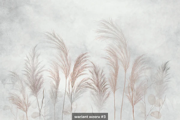 Na obrazie widzimy subtelne, zwiewne liście palmowe, które opadają ku dołowi niczym delikatna zasłona z natury. Ich cienkie, precyzyjnie zarysowane kształty tworzą rytmiczny, uspokajający wzór, a miękkie przejścia tonów szarości i bieli nadają całości lekkości i elegancji. Kompozycja emanuje spokojem, przywołując na myśl ciepłe, bezwietrzne popołudnie w cieniu palm. Tapeta piórka – doskonały motyw na ozdobę ścienną, który wnosi do wnętrza harmonię, świeżość i nutę egzotycznego spokoju.
