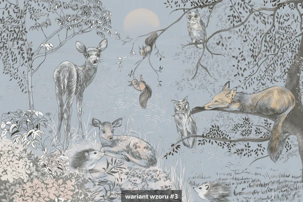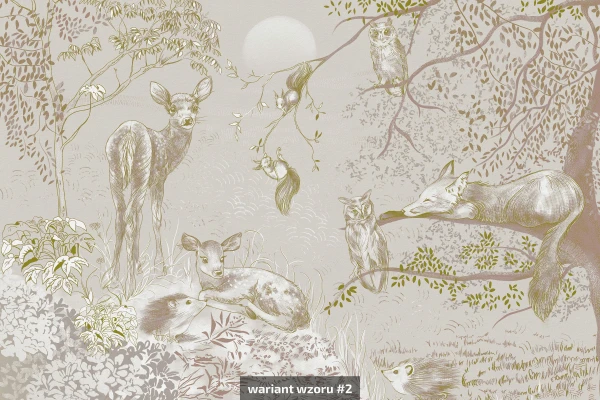 Wzór przedstawia magiczną scenę z udziałem jednorożców, elfów i bajkowej fauny ukrytej w zaczarowanym lesie. Delikatna mgła, subtelne światło księżyca i stonowana paleta barw tworzą atmosferę snu, w której granica między rzeczywistością a wyobraźnią całkowicie się zaciera. Fototapeta dla dziewczynki jednorożec to idealna dekoracja ścienna do pokoju dziecięcego – inspirująca, ciepła i pełna uroku. Obraz wprowadza malucha w świat fantazji, rozwija kreatywność i tworzy przytulną przestrzeń do zabawy i odpoczynku.