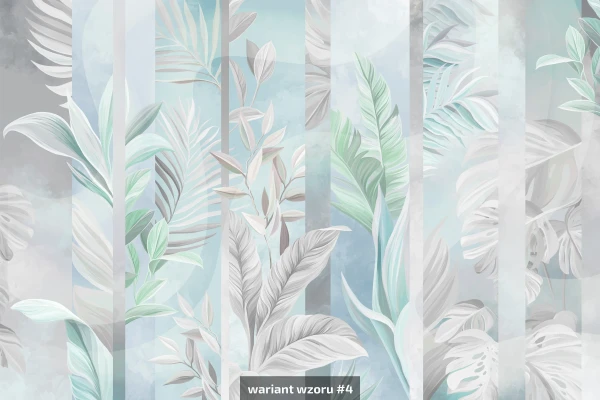 Botaniczna kompozycja w chłodnych odcieniach mięty i szarości ukazuje delikatne liście tropikalnych roślin na tle surowej, betonowej struktury. Ten kontrast pomiędzy naturą a industrialnym charakterem ściany tworzy harmonijną grę faktur i barw. Motyw liści rozchodzi się niczym delikatna mgła, wprowadzając do wnętrza spokój, świeżość i elegancką prostotę. Ta fototapeta na ścianę do sypialni to idealne tło dla nowoczesnych aranżacji, gdzie estetyka miejskiej dżungli spotyka się z wyrafinowaną subtelnością.